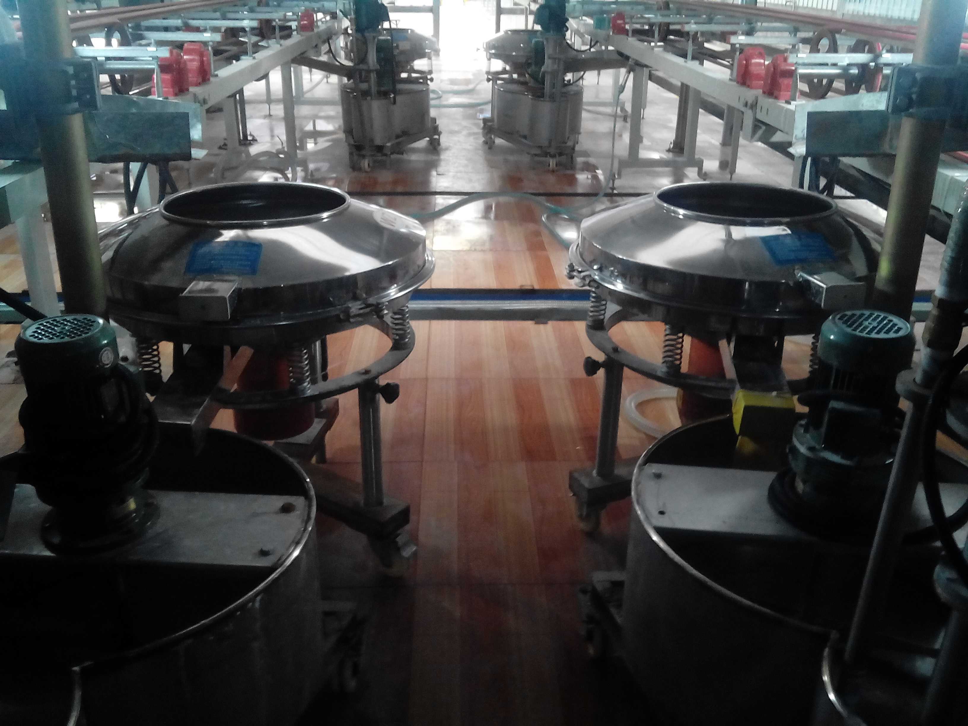 陶瓷釉料的過(guò)濾是采用我公司的高頻振動(dòng)篩,根據(jù)陶瓷釉料的特性及過(guò)濾目的,我公司專(zhuān)門(mén)針對(duì)粘稠性較強(qiáng)的漿液物料的過(guò)濾除雜而設(shè)計(jì)的過(guò)濾篩分設(shè)備,高頻率的振動(dòng)將漿液打散成分離狀的液體分子,更易于分離出其中的細(xì)小雜質(zhì)。高頻振動(dòng)篩在過(guò)濾陶瓷釉料的過(guò)程中,采用140目篩網(wǎng),使用直徑800設(shè)備時(shí)每個(gè)小時(shí)的處理量在650公斤左右;目前陶瓷釉料最高采用325目篩網(wǎng)過(guò)濾。